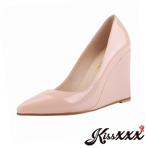 尖頭淺口時尚坡跟百搭楔形高跟鞋 杏 |