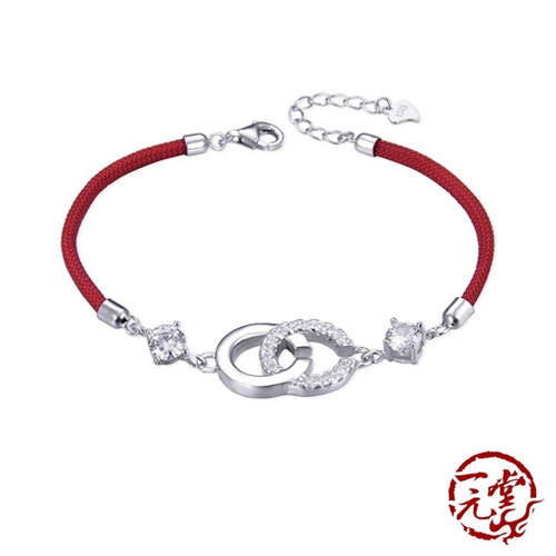 純銀925閃耀鋯石C圈造型紅繩手鍊 *一元堂* |