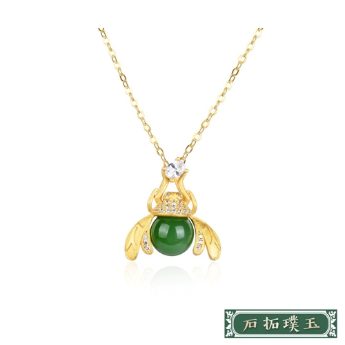 純銀925古法金微鑲美鑽甲蟲碧玉造型項鍊 *石拓璞玉* |