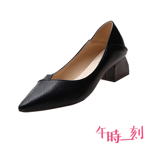 | 高級質感紋理PU皮革鞋面/時尚女王尖型鞋頭款式/優雅4CM粗跟穩固好走 |