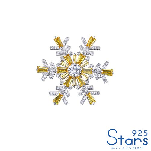 純銀925閃耀美鑽撞色方晶鋯石雪花造型胸針*925 STARS* |