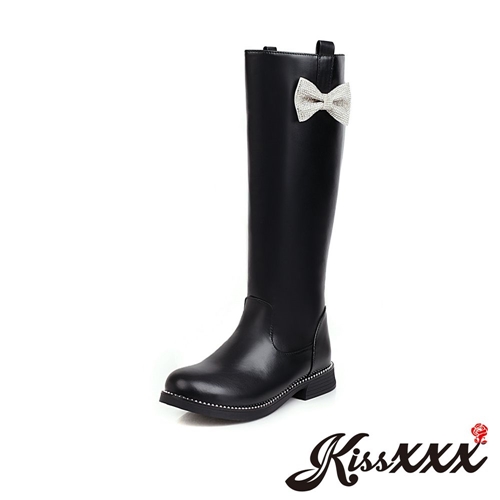 可愛蝴蝶結造型百搭低跟長筒靴 黑 |