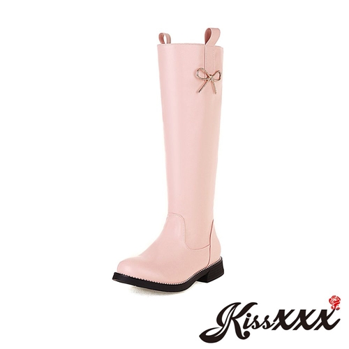 優雅法式蝴蝶結造型百搭低跟長靴 粉 |