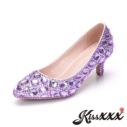 尖頭淺口不規則寶石貼鑽華麗高跟鞋 紫 |