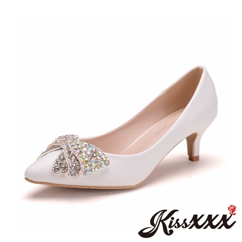 璀璨華麗寶石公主風蝴蝶結造型尖頭高跟鞋 白 |