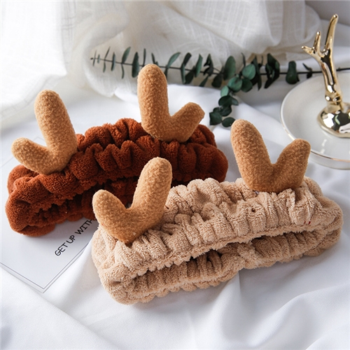 [快速出貨] 可愛賣萌毛絨鹿角髮帶 洗臉髮帶 髮箍 2色任選*MISA* |