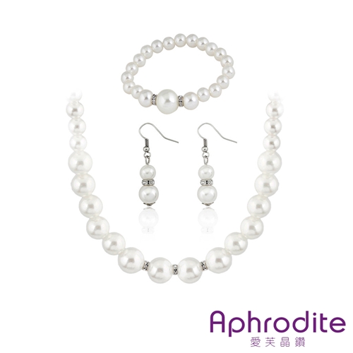浪漫鑽圈珍珠項鍊耳環手鍊3件套組*愛芙晶鑽* |