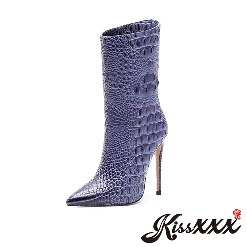 [訂製]時尚復古質感立體鱷魚皮紋高跟直筒短靴 紫 |