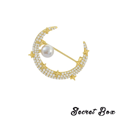 [快速出貨] 閃耀水鑽月牙星星珍珠胸針 2色任選*SECRET BOX* |