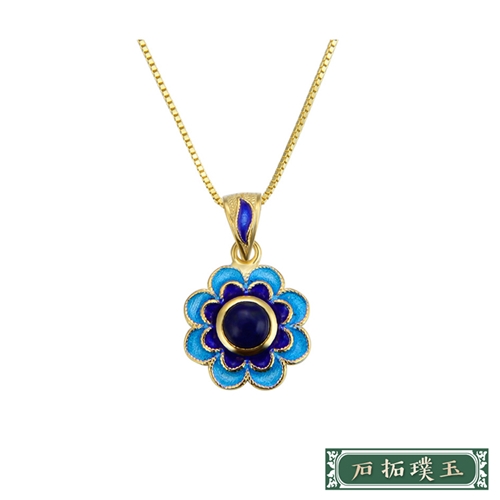 純銀925寶石鑲嵌景泰藍花朵造型吊墜 4款任選*石拓璞玉* |