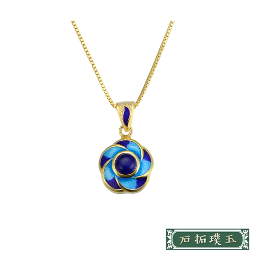 純銀925復古寶石鑲嵌景泰藍螺旋花朵吊墜 8款任選*石拓璞玉* |