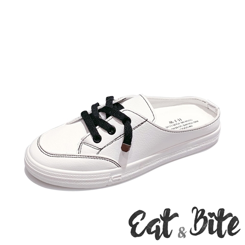 | 可愛帆布鞋造型穆勒鞋/縫線跳色細節/鞋帶經典設計 |