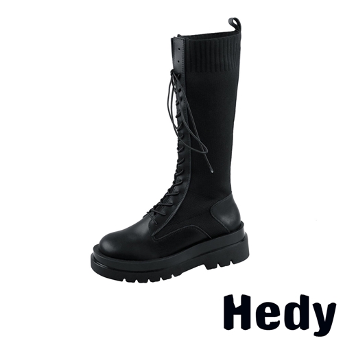 [快速出貨] 潮流時尚針織拼接復古長筒馬丁靴 黑*HEDY* |
