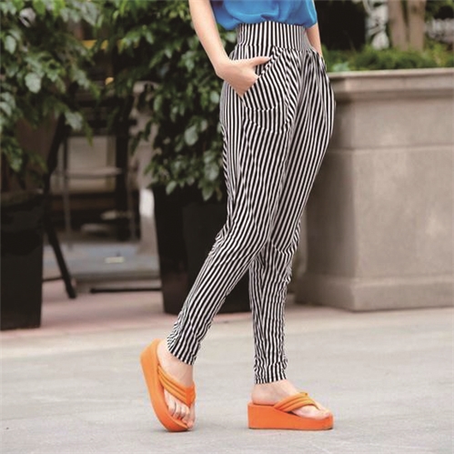 [快速出貨] 冰絲涼感休閒印花九分哈倫褲 D款 斑馬條紋*Kotone* |