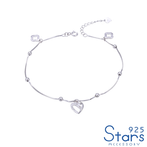 純銀925微鑲美鑽愛心四葉草吊墜小圓珠造型腳鍊*925 STARS* |