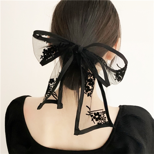 [快速出貨] 韓國設計法式浪漫植絨花朵長緞帶 髮帶 絲巾*INES* |