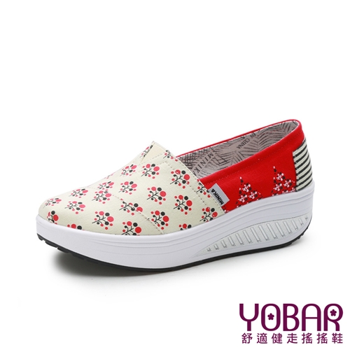 [快速出貨] 幾何果樹印花止滑帆布美腿搖搖休閒鞋 紅*YOBAR* |