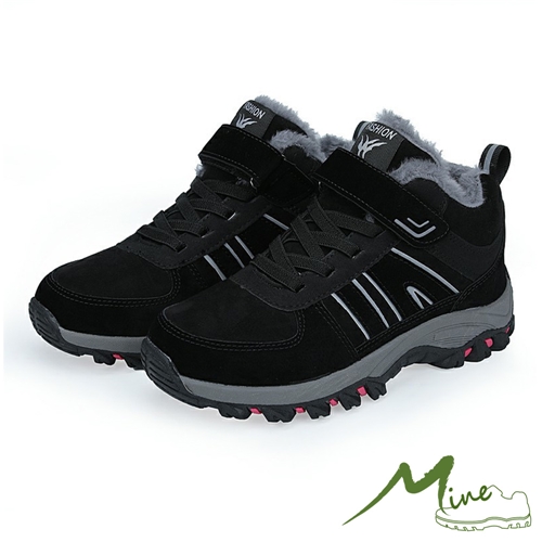[快速出貨] 真皮防滑魔鬼黏戶外保暖時尚休閒登山鞋 黑紅*MINE* |