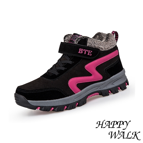 [快速出貨] 真皮流線毛絨魔鬼粘運動鞋 黑玫紅*HAPPY WALK* |