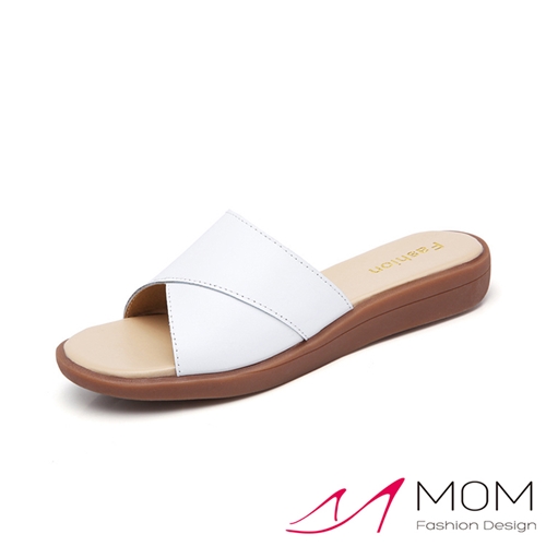 真皮V口交錯造型時尚舒適平底拖鞋 白 |
