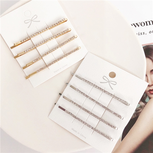 [快速出貨] 閃耀水鑽一字髮夾4件組 2色任選*SECRET BOX* |
