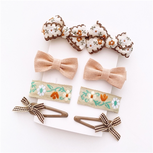 [快速出貨] 法式浪漫布藝巧克力色系髮夾8件組 5款任選*INES* |