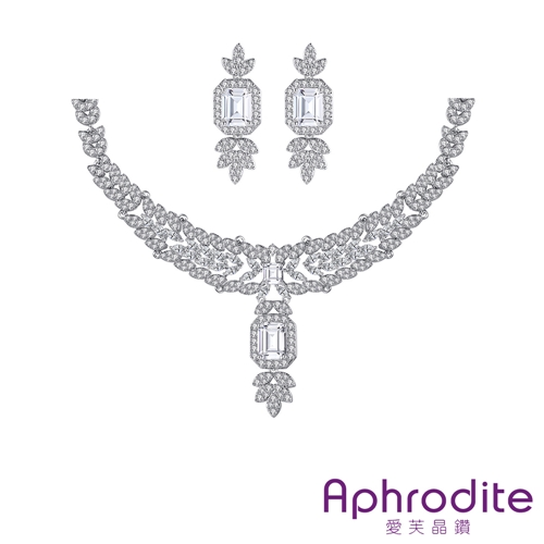 華麗鋯石美鑽花朵麥穗造型項鍊耳環2件套組*愛芙晶鑽* |