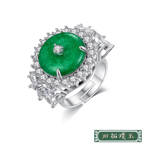 微鑲美鑽復古大氣圓形綠玉瓍造型開口戒 戒指*石拓璞玉* |