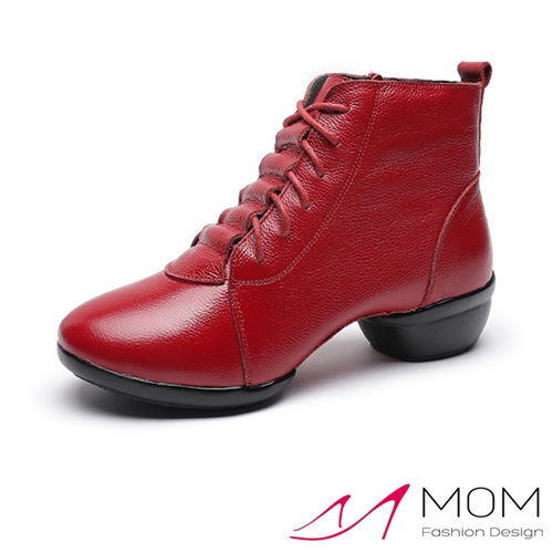 真皮軟底繫帶短筒休閒鞋 舞鞋 紅 |