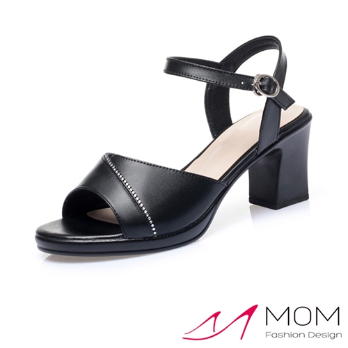 | 皮革踝帶設計/6.5CM粗鞋跟/美鑽精緻細節 |