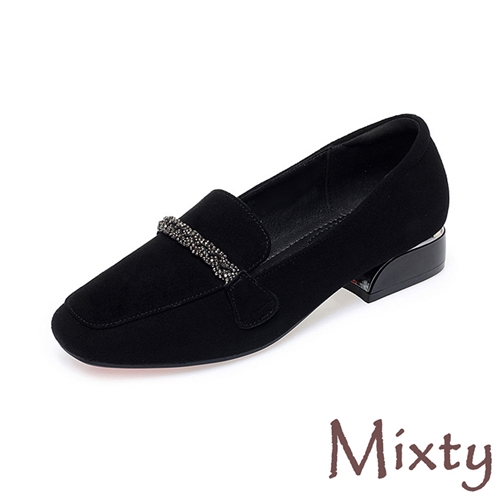 復古翻絨一字燙鑽繩飾典雅粗跟樂福鞋 黑 |