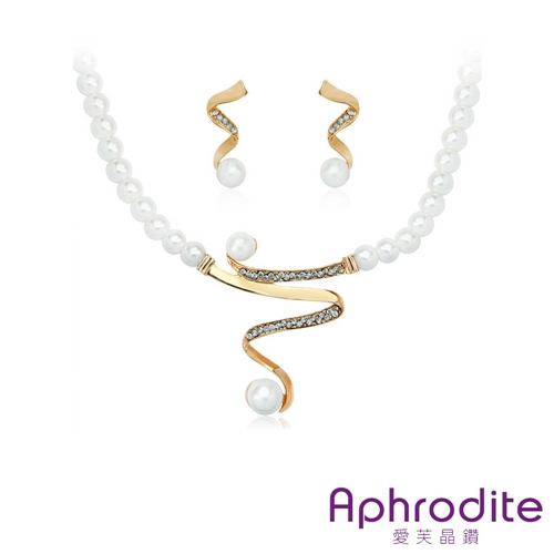 [快速出貨] 氣質美鑽優雅S線條耳環項鍊2件套組*愛芙晶鑽* |