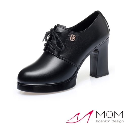 真皮優雅防水台美鑽鑽飾高跟繫帶踝靴 黑 |