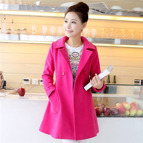 [快速出貨] 時尚韓版毛呢修身大口袋純色大衣外套 玫紅*ONEE* |