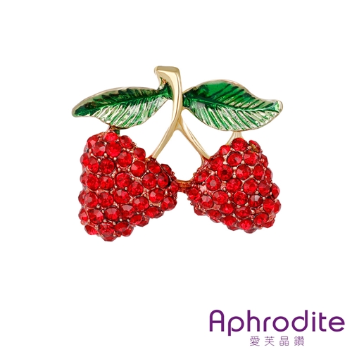 [快速出貨] 滿鑽鑲嵌可愛櫻桃造型胸針*愛芙晶鑽* |