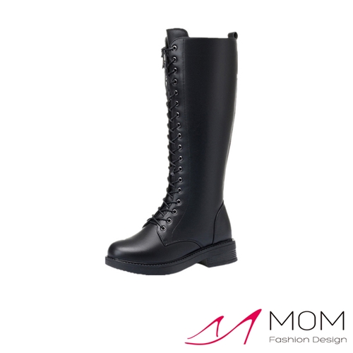 全真皮牛皮經典綁帶造型時尚長靴 黑 |