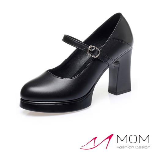 真皮淺口防水台優雅一字帶高跟鞋 黑 |