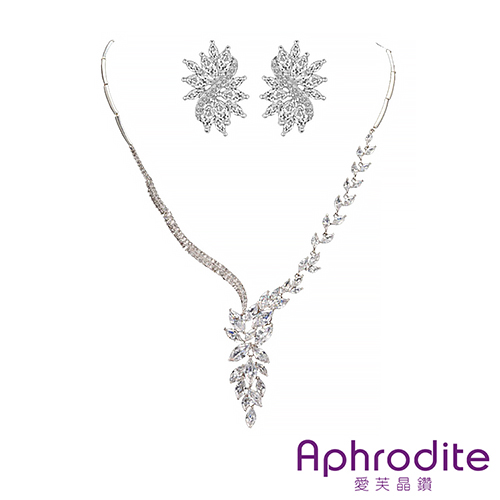 華麗滿鑽馬眼鑽冰凌花造型項鍊耳環2件套組*愛芙晶鑽* |