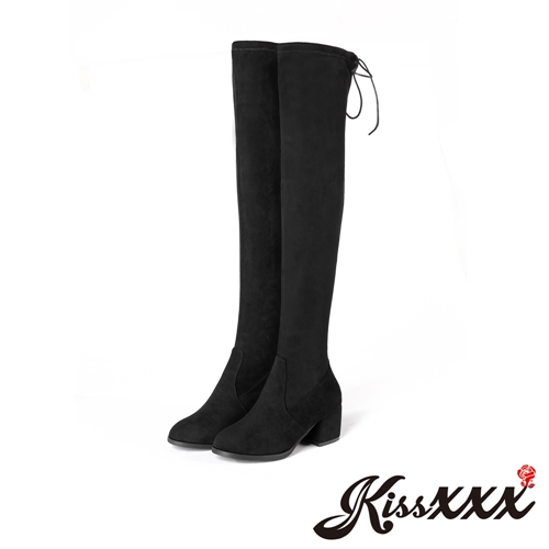 [快速出貨] 經典英倫風純色彈力靴口粗跟過膝長靴 黑 *KISSXXX* |