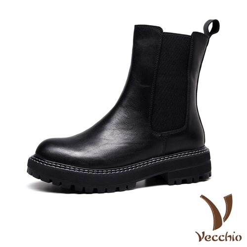 [快速出貨] 全真皮頭層牛皮經典時尚切爾西短靴 黑*Vecchio* |