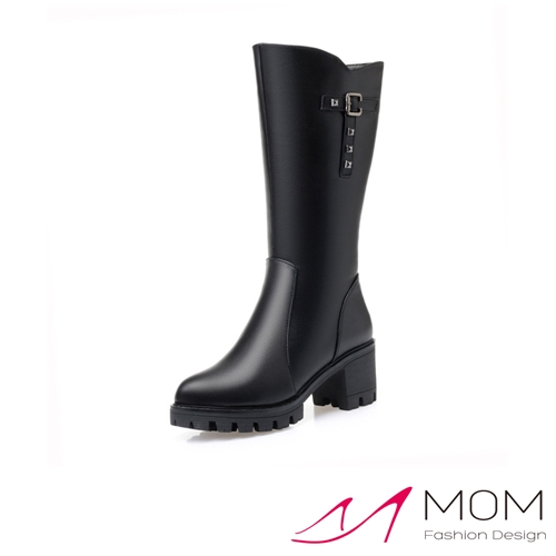 [快速出貨] 質感鉚釘造型保暖粗跟中筒靴 黑*MOM* |
