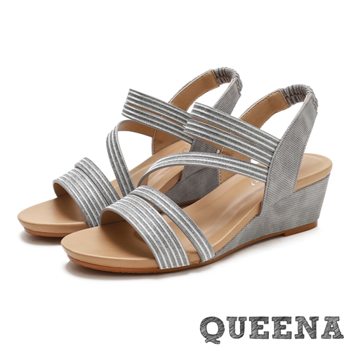 [快速出貨] 金屬亮絲Z字帶造型時尚坡跟羅馬涼鞋 灰*QUEENA* |
