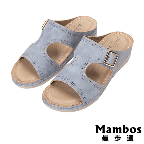 [快速出貨] 簡約工字造型舒適厚底坡跟拖鞋 藍*Mambos 曼步適* |