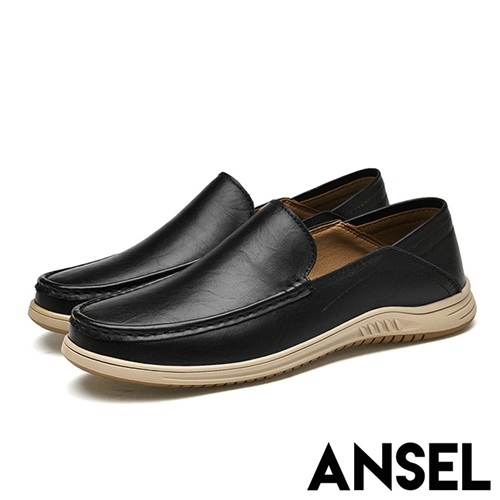 [快速出貨] 真皮頭層牛皮兩穿法紳士樂福鞋 A款素面黑*ANSEL* |