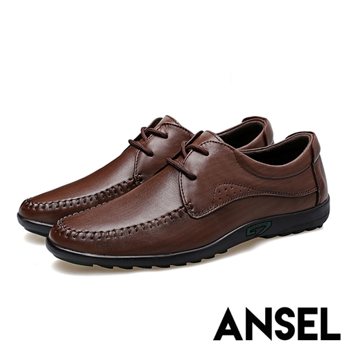 [快速出貨] 真皮頭層牛皮直條印染手縫經典紳士休閒鞋 棕*ANSEL* |