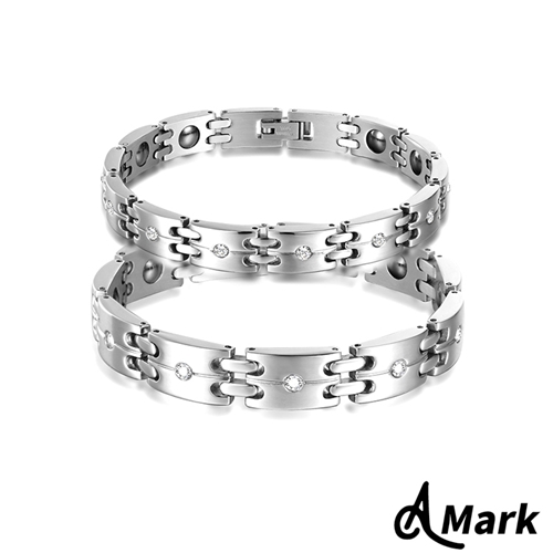 [快速出貨] 閃耀水鑽能量磁石316L鈦鋼手鍊 2款任選*A MARK* |