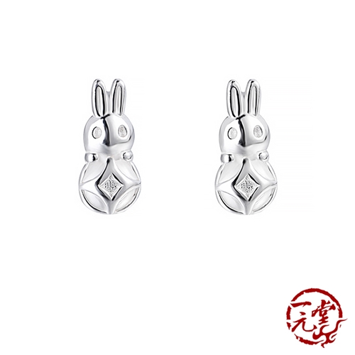 999千足銀系列招財錢兔福兔呈祥造型球針耳釘*一元堂* |