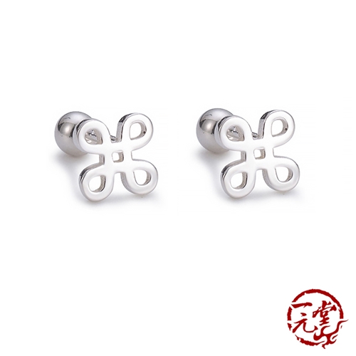 999千足銀系列幾何縷空中國結圖樣造型球針耳釘*一元堂* |