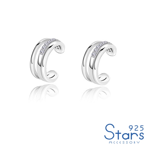 純銀925微鑲美鑽縷空線條C圈耳骨夾*925 STARS* |