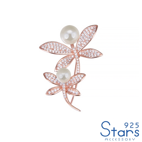 純銀925美鑽鑲嵌雙蜻蜓珍珠造型胸針*925 STARS* |